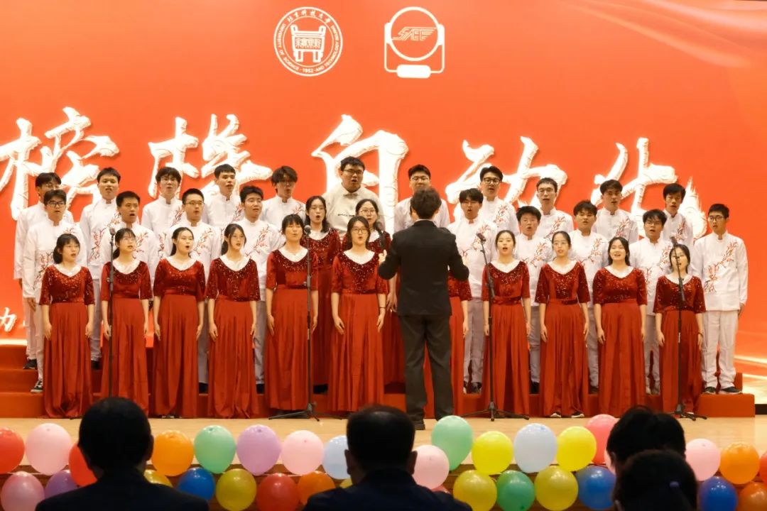 大会表彰颁奖环节,在“爱国”篇章,本科2022级、2023级的学生党员和入党积极分子们合唱节目《启航》,呈现出自动化学子赤诚向党的拳拳之心,展现学院学生积极向上的精神风貌与坚定的理想信念,彰显新时代青年的责任担当与青春力量,在激昂歌声中传递着对党的深情礼赞与对未来征程的豪情壮志。