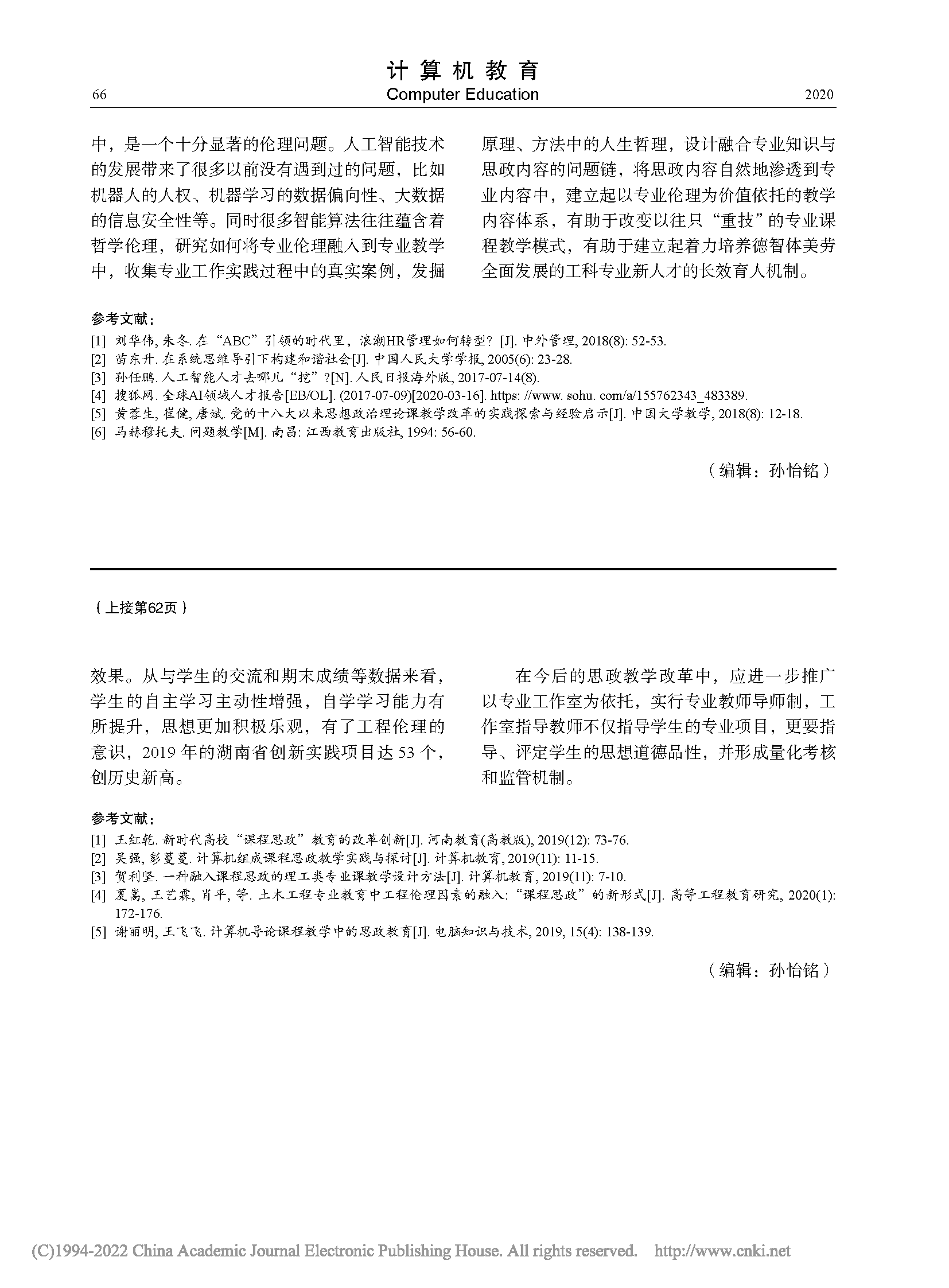 人工智能课程中的思政教育探索与实践 |