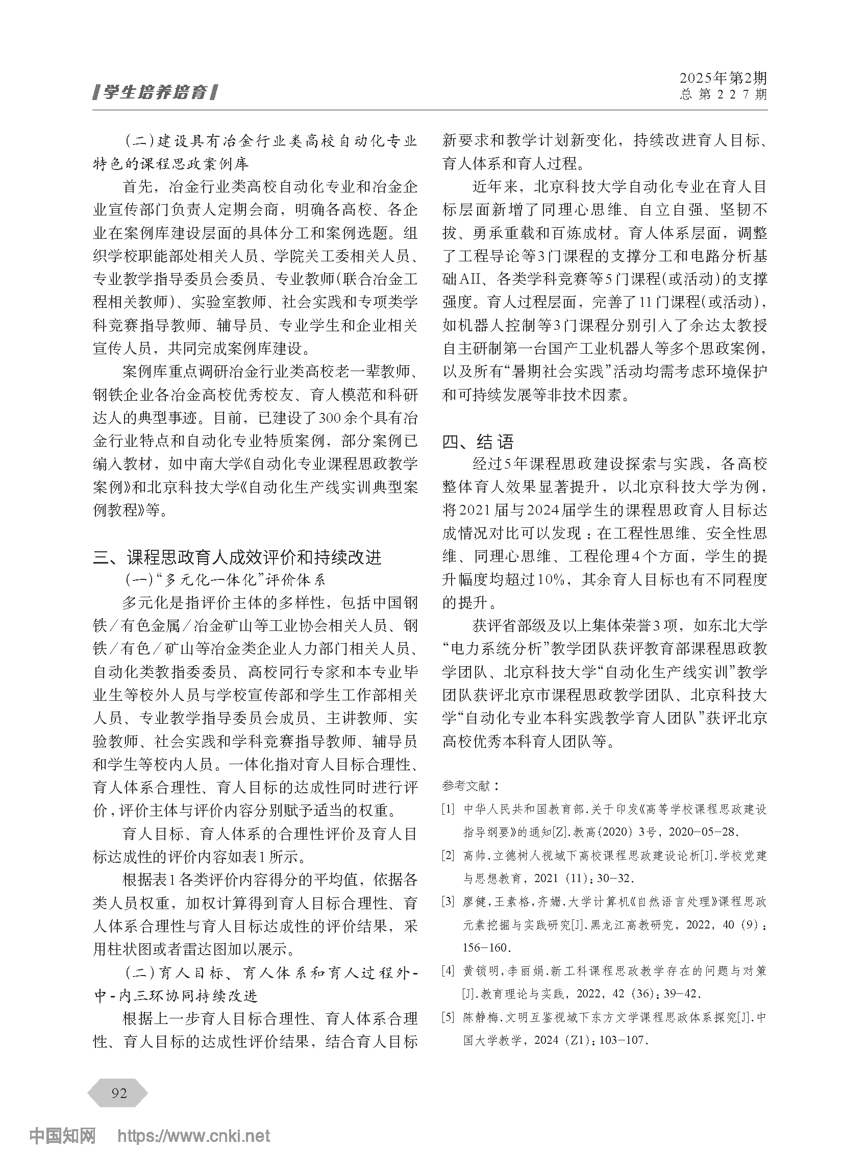 冶金行业类高校自动化专业课程思政建设 |