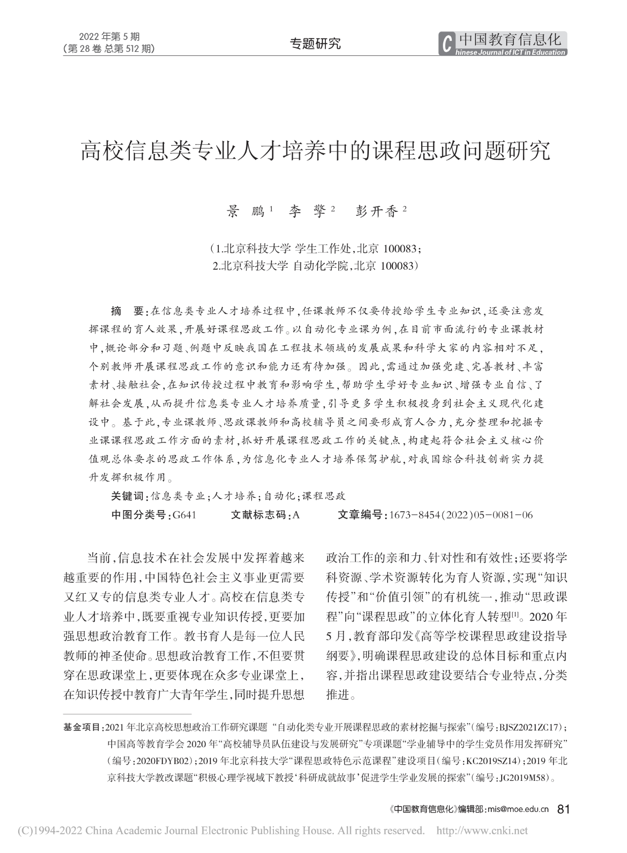 高校信息类专业人才培养中的课程思政问题研究 |