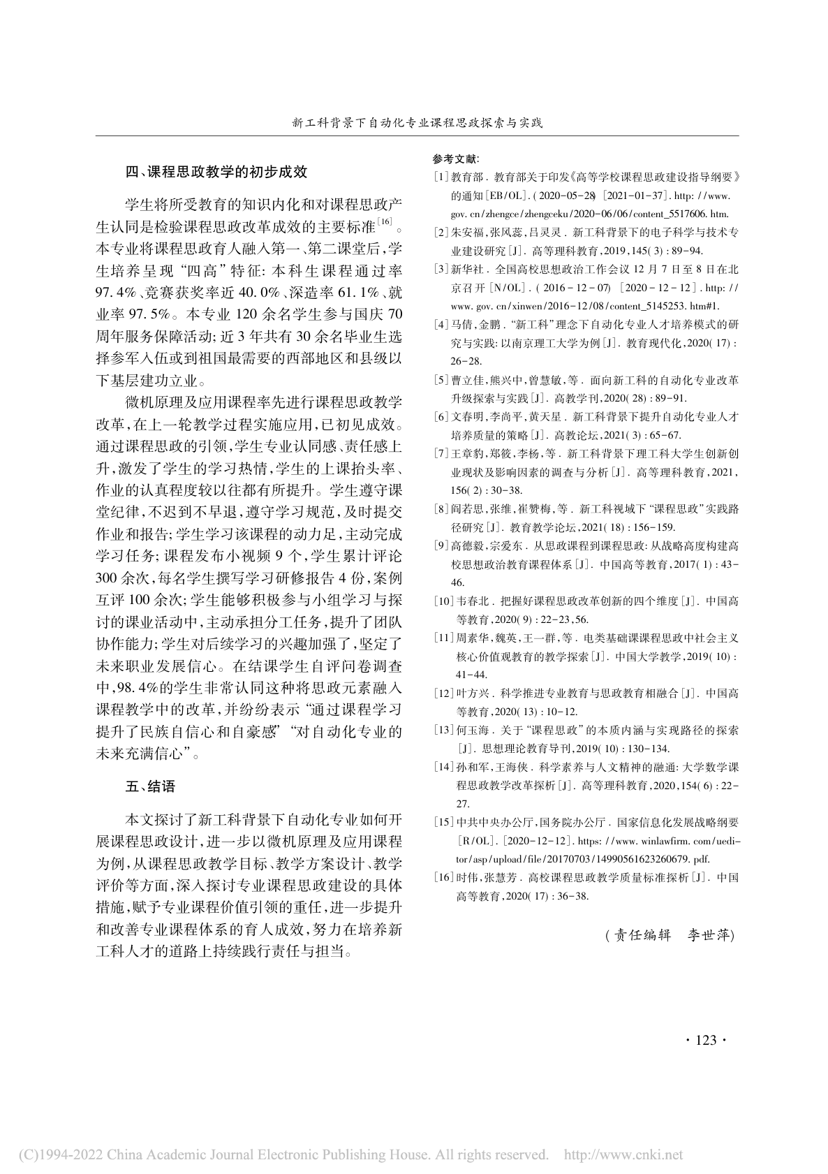 新工科背景下自动化专业课程思政探索与实践 ——以“微机原理及应用”课程为例 |