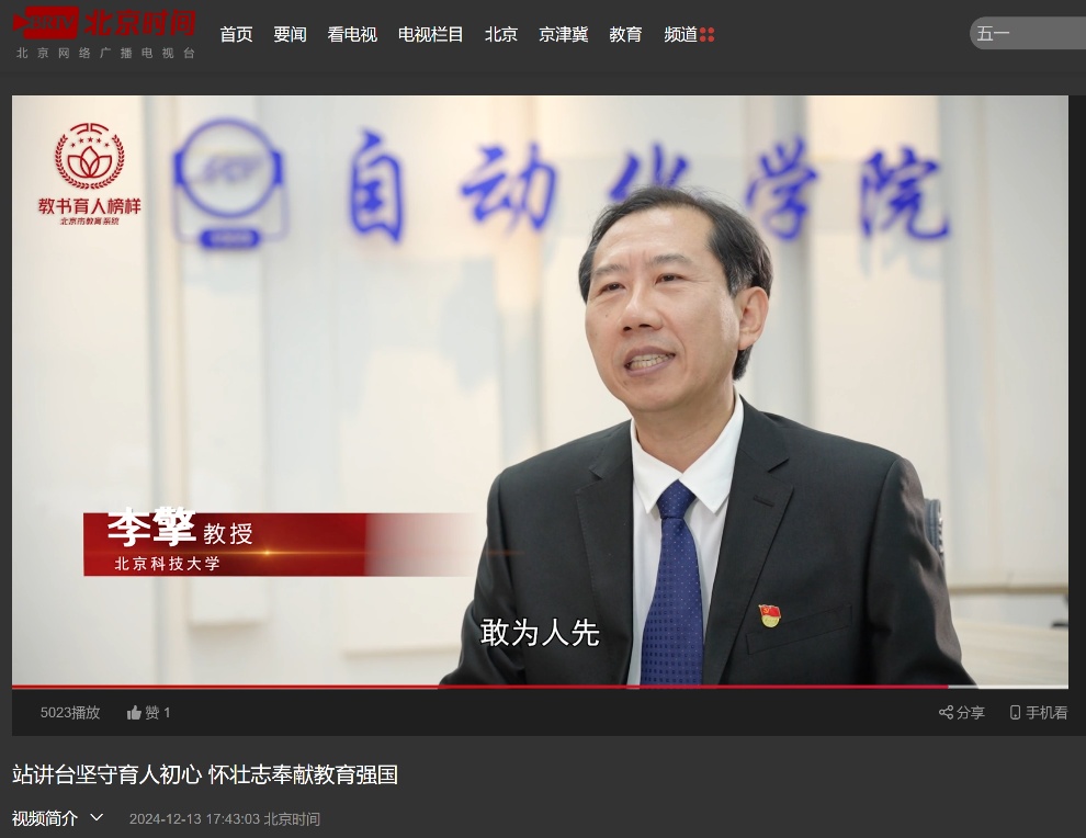 [8] BRTV报道北京市教育系统“教书育人榜样”williamhill中国李擎教授事迹