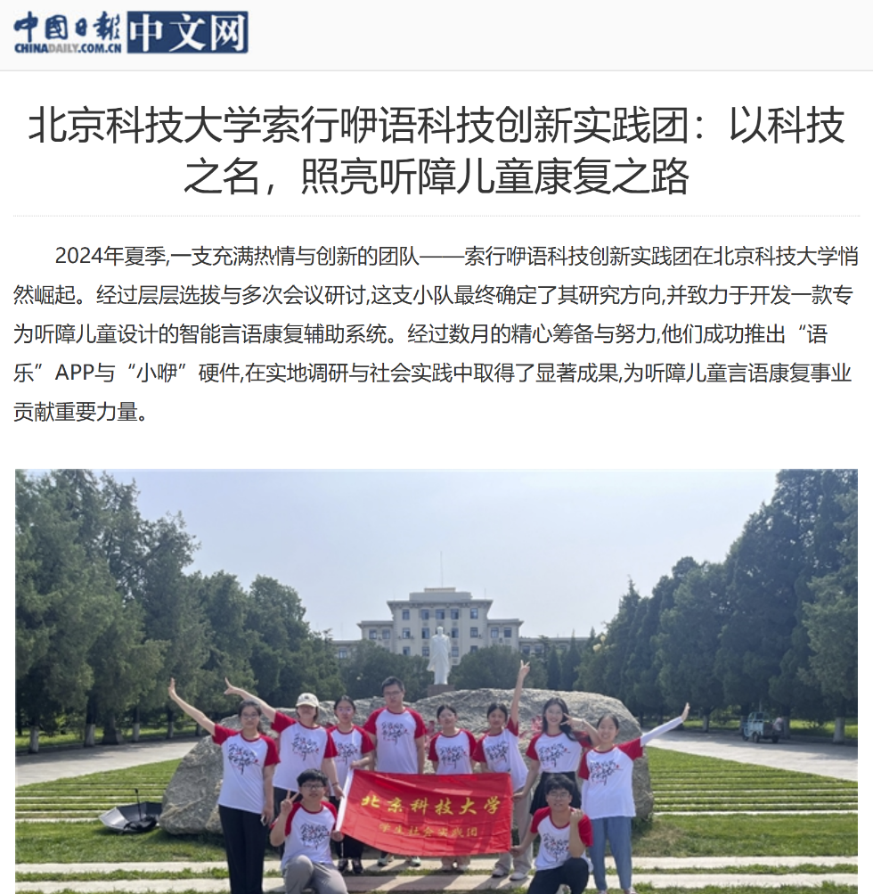 中国日报对williamhill中国“索行咿语”实践团助力听障儿童康复训练事迹进行报道