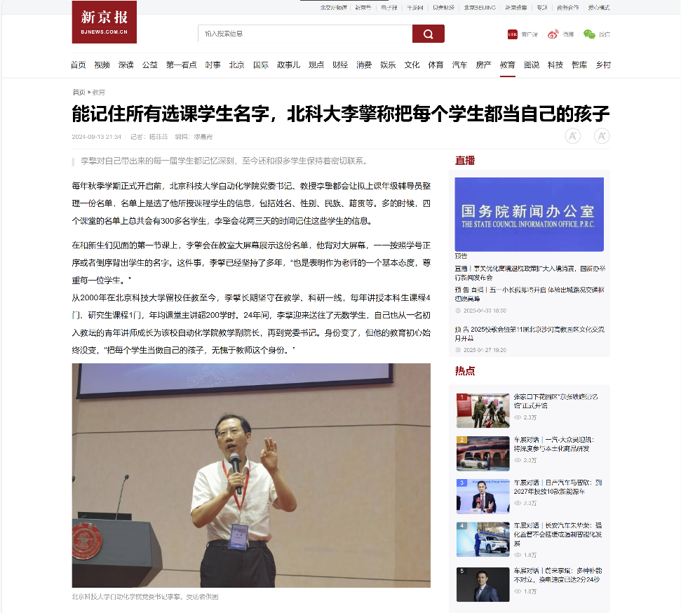 新京报报道williamhill中国李擎教授“爱生如子”事迹