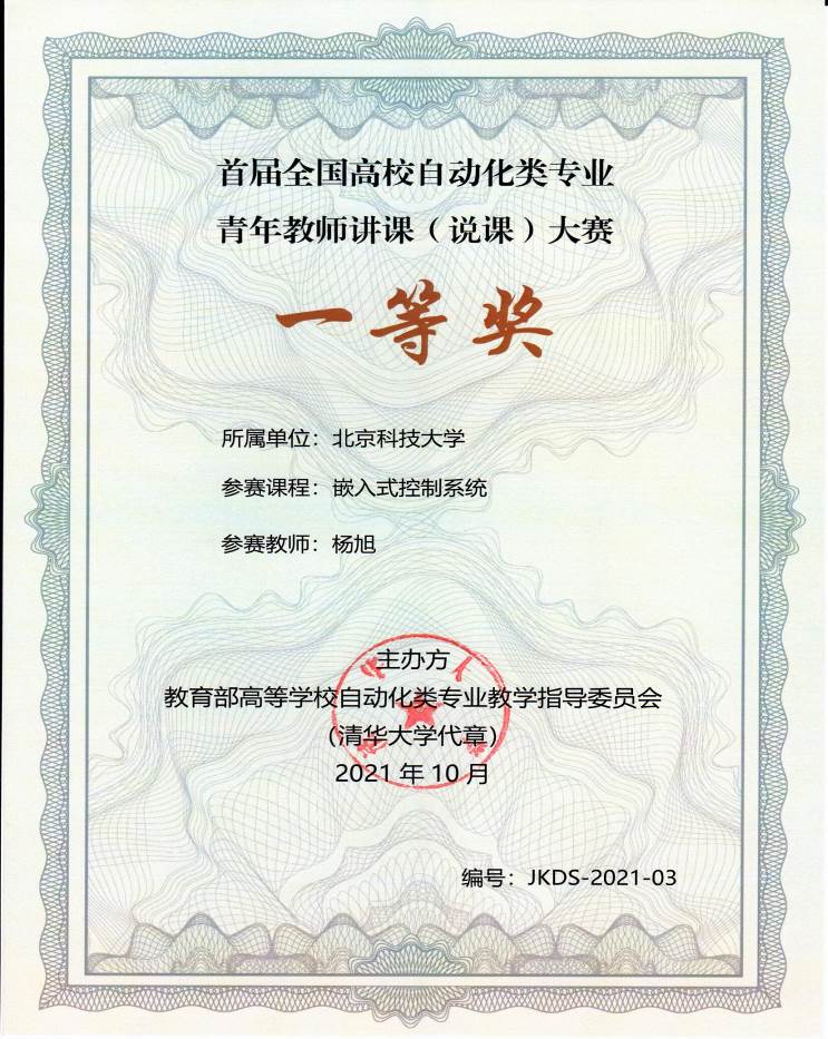 [42] 【教学竞赛奖】2021年10月,杨旭获全国高校自动化类专业青年教师讲课(说课)大赛一等奖