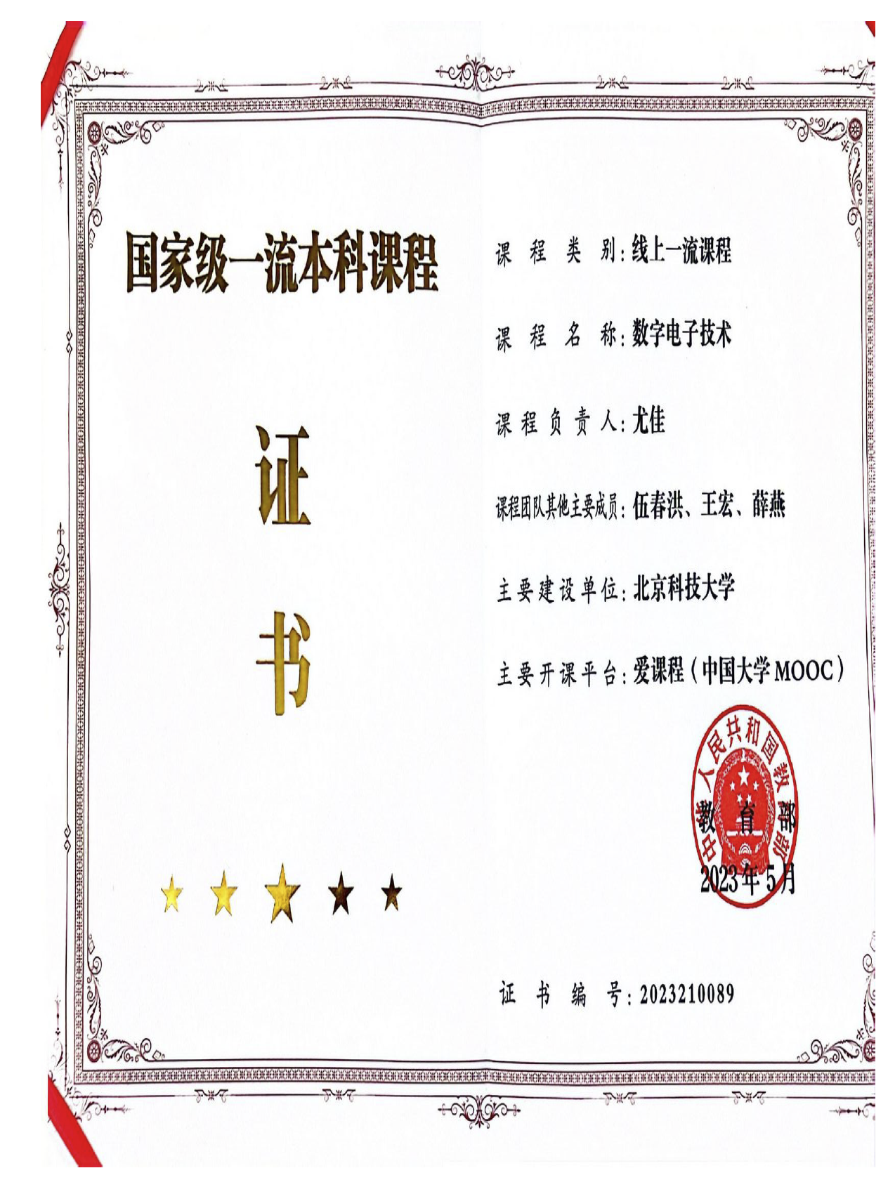 [10] 【国家一流课程】2023年6月,数字电子技术获国家级一流本科线上课程