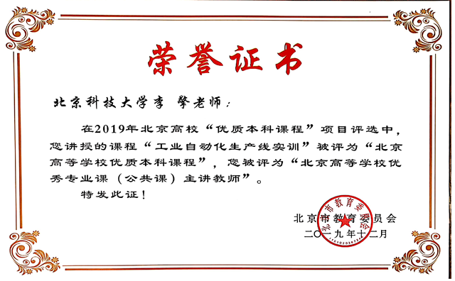 [34] 【优质课程奖】2019年12月,“工业自动化生产线实训”获北京高等学校优质本科课程