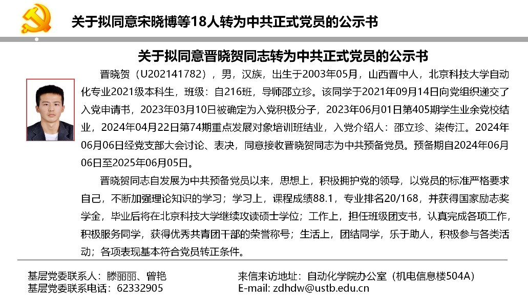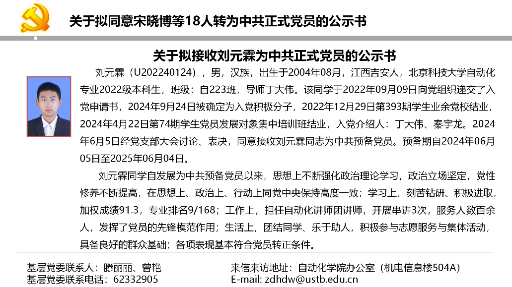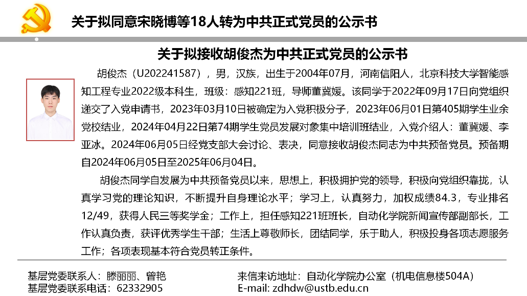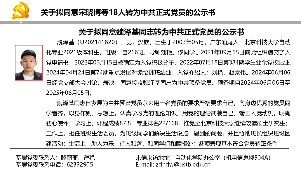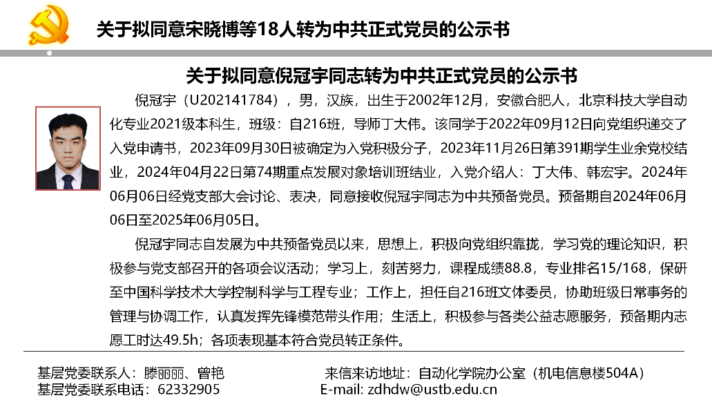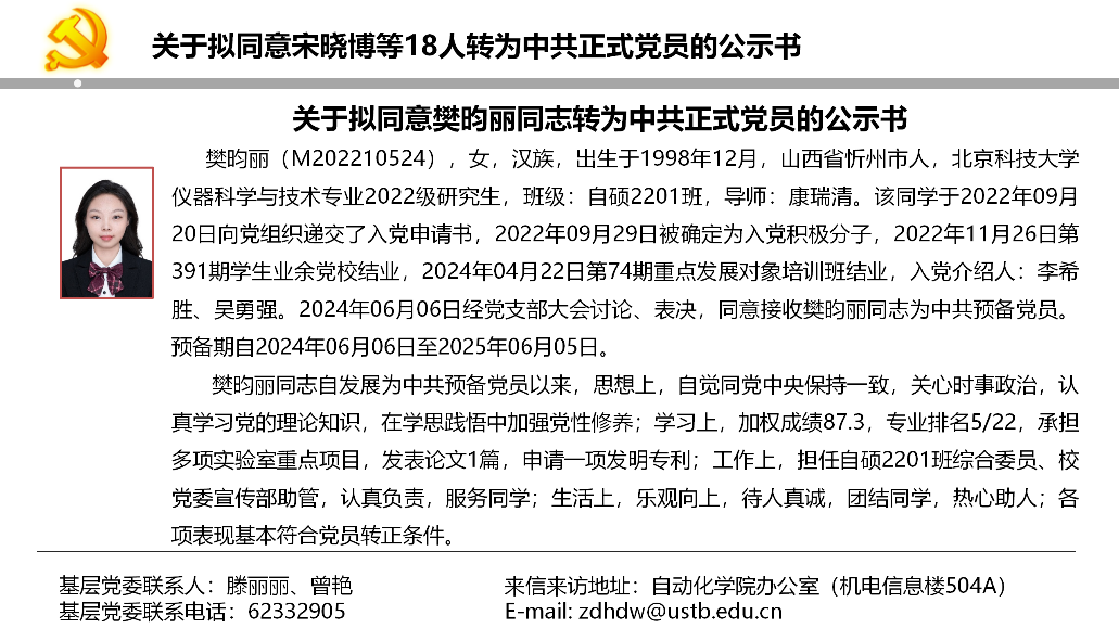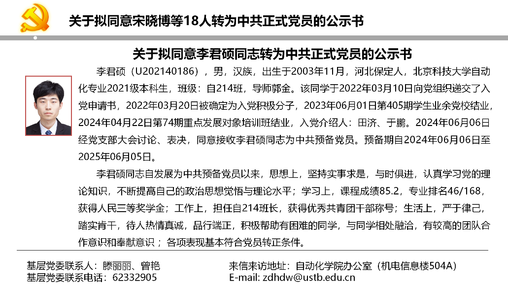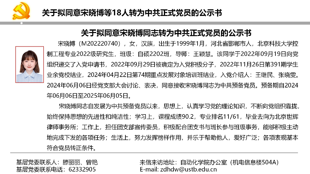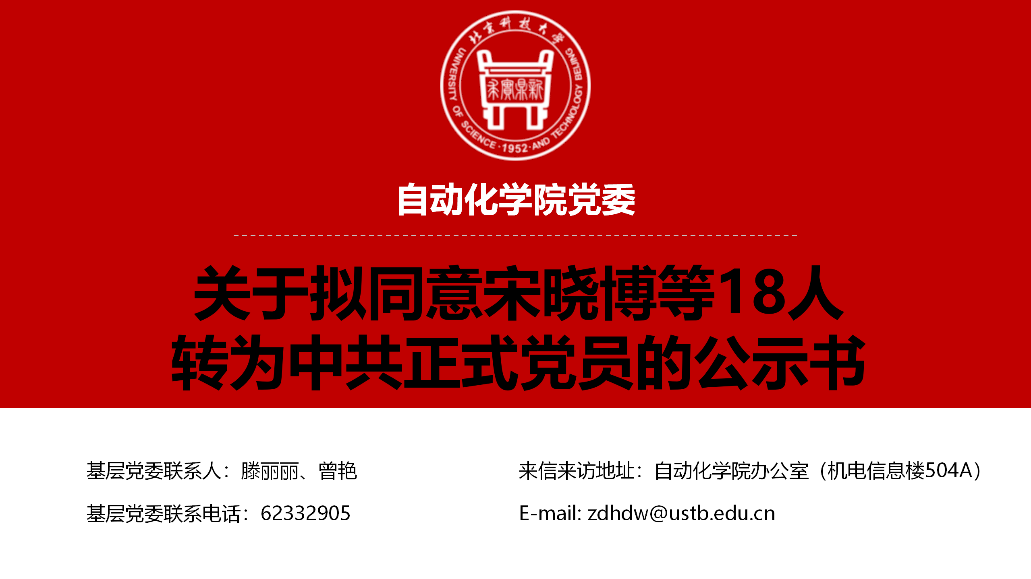 关于拟同意宋晓博等18人转为中共正式党员的公示书