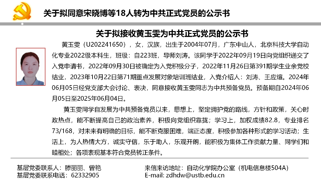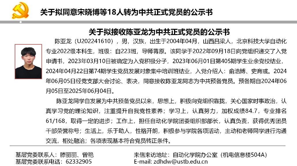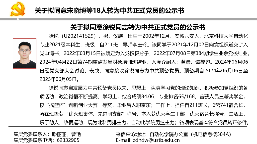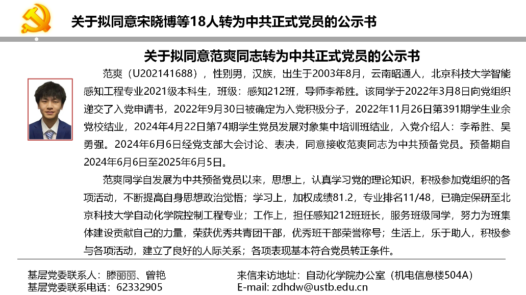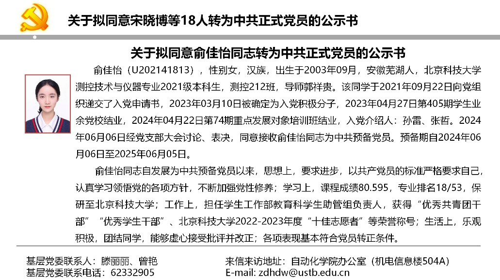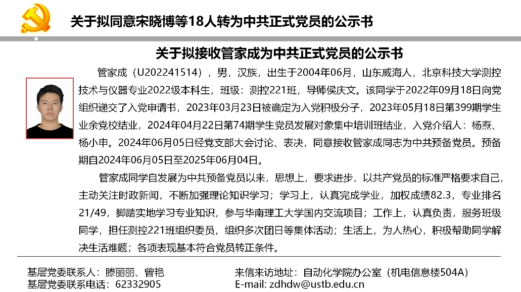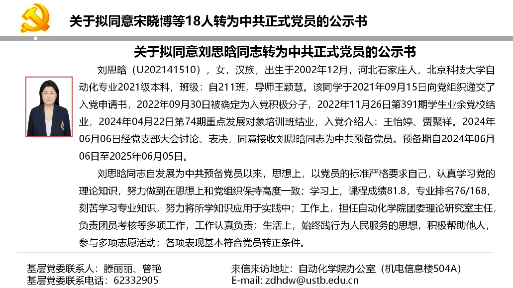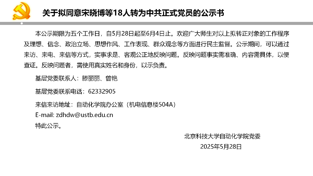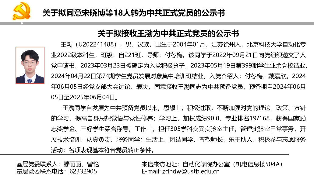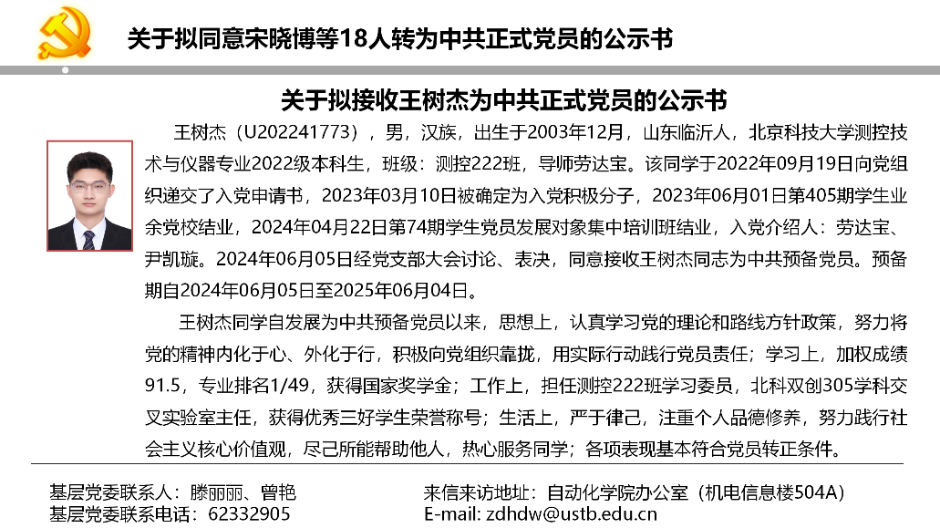 关于拟同意宋晓博等18人转为中共正式党员的公示书