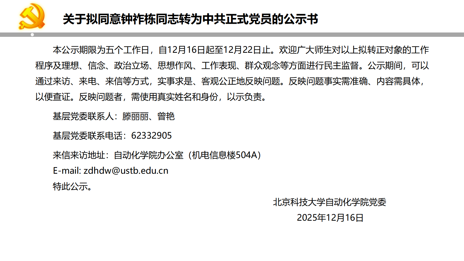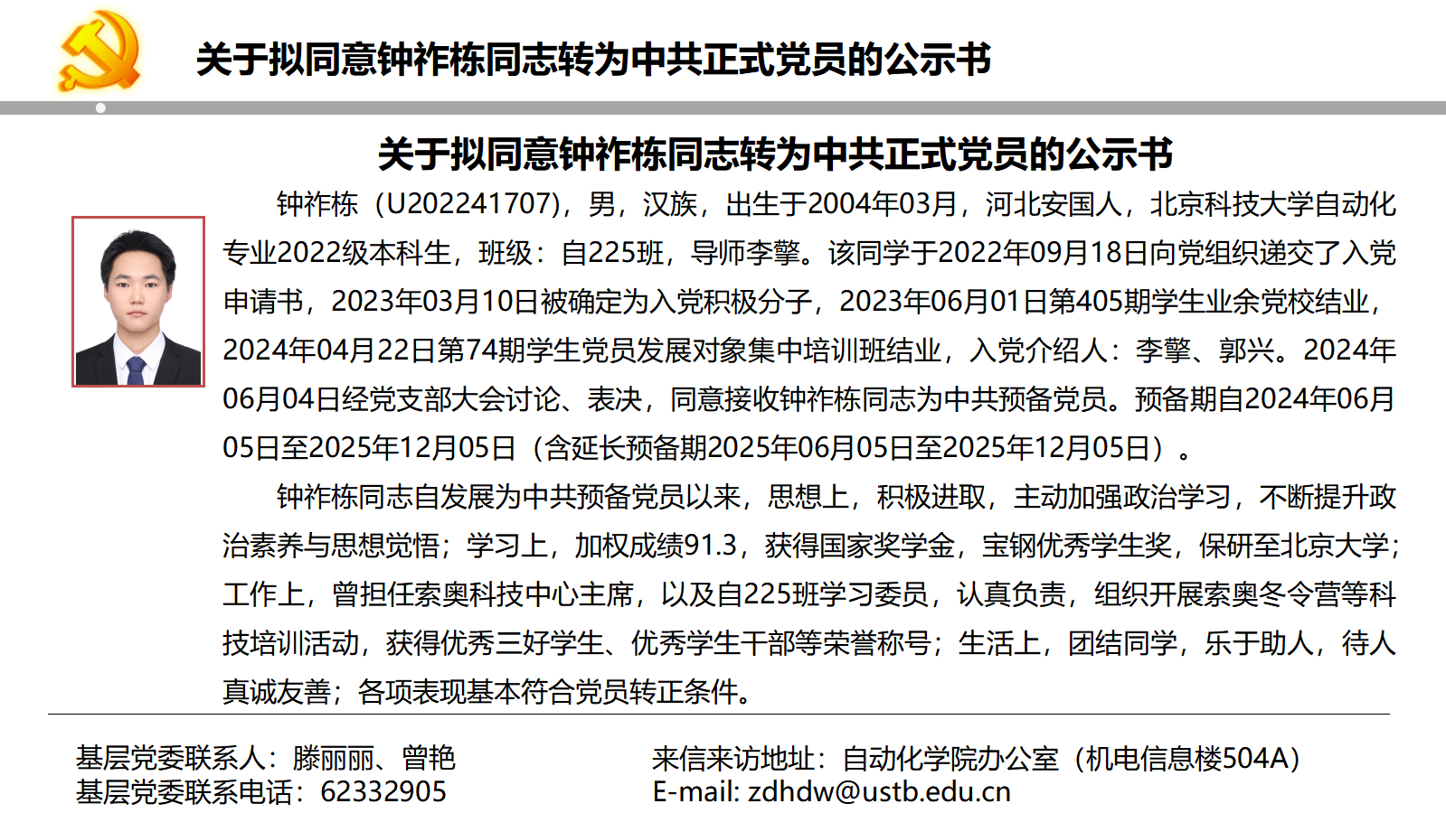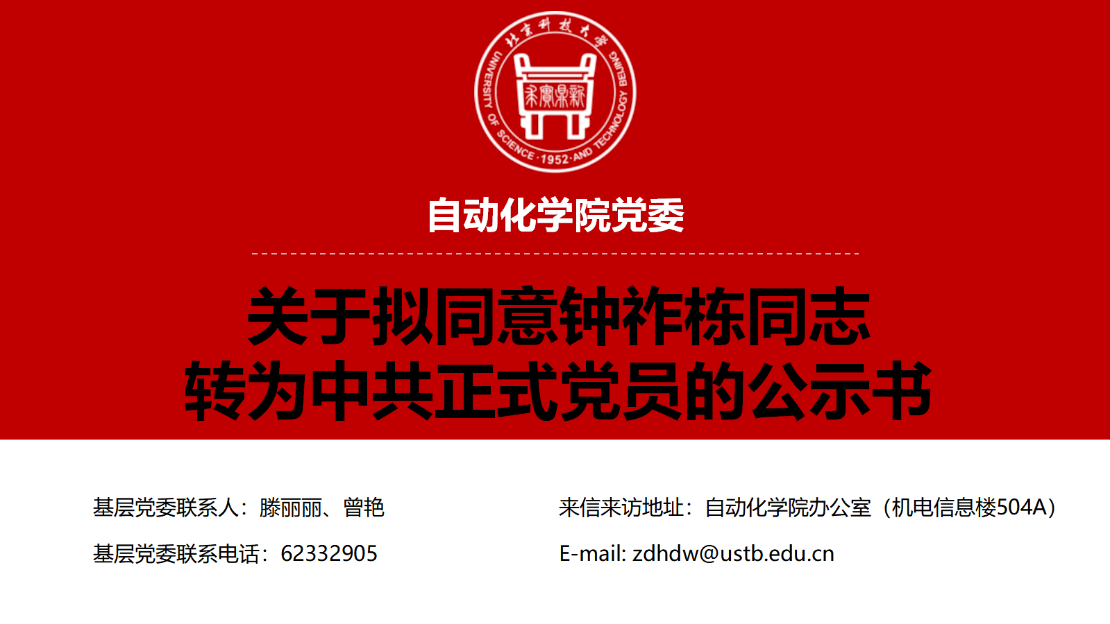 关于拟同意钟祚栋同志转为中共正式党员的公示书