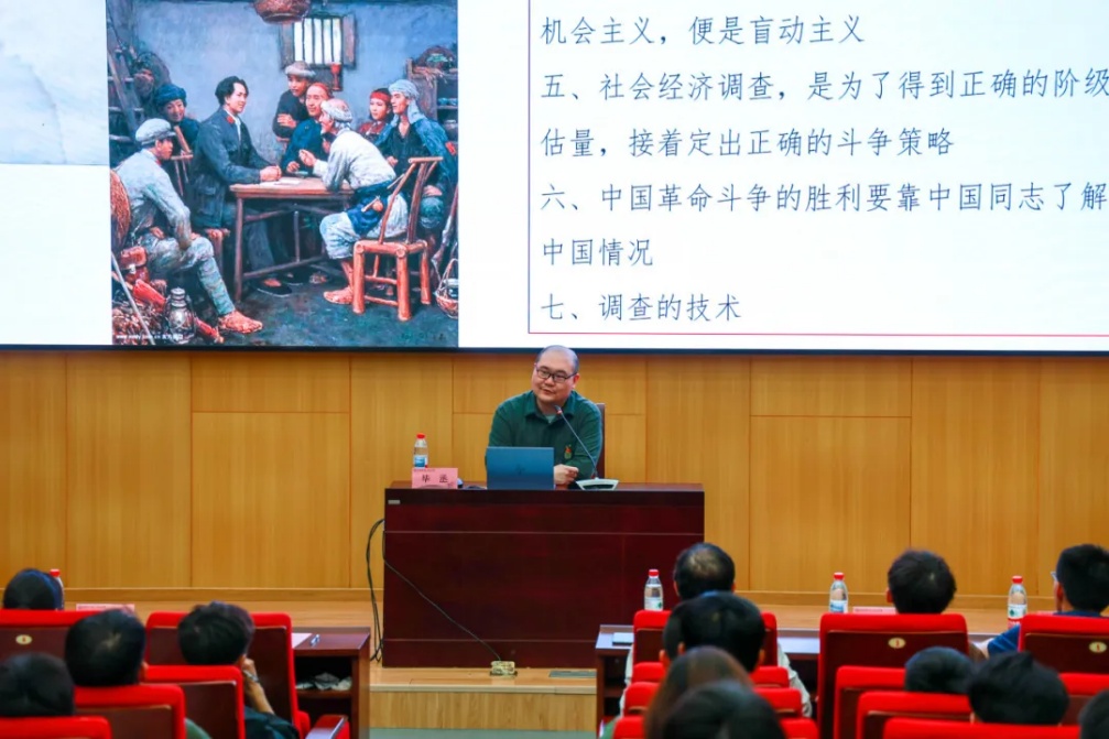 毕丞作《全面从严治党永远在路上》专题报告。他首先指出了要深刻认识开展深入贯彻中央八项规定精神学习教育的重要意义,随后通过案例解读“没有调查,没有发言权”和“健全全面从严治党体系”的现实意义,最后强调了要以高质量党建引领组织工作高质量发展,勉励大家要不断加强党性修养,传承党的优良作风,努力成长为具有为国奉献钢筋铁骨的高素质人才。