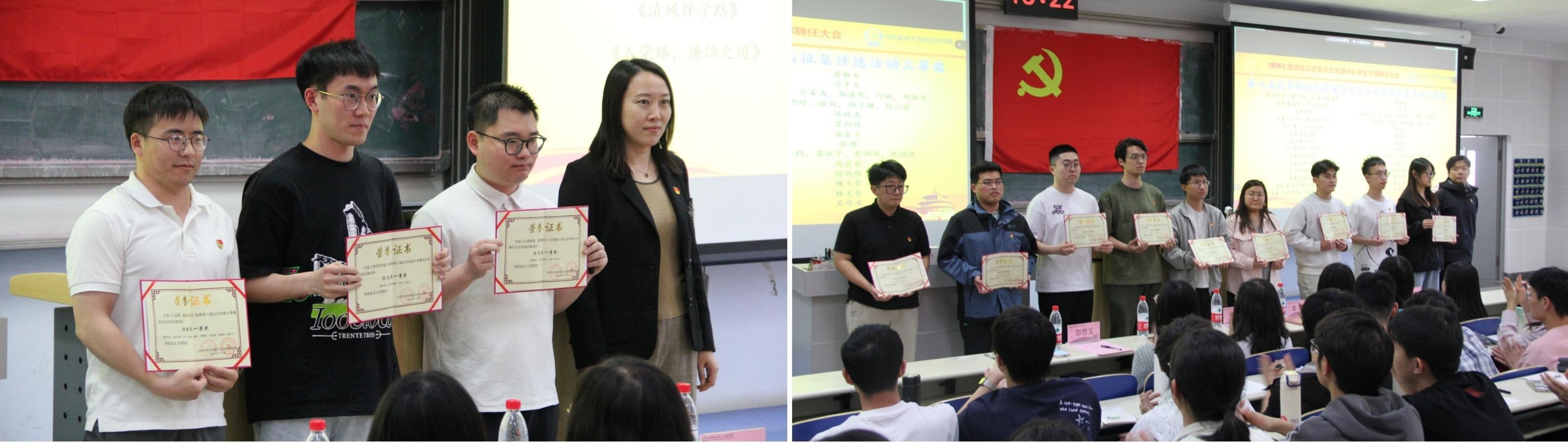 近日,WilliamHill中文在机电信息楼201举办2024年度学校廉洁文化优秀作品颁奖仪式。学院党委副书记、副院长滕丽丽,党委秘书曾艳,团委副书记俞浩博,辅导员韩宏宇、邵思玉、卫佳欣参加活动。